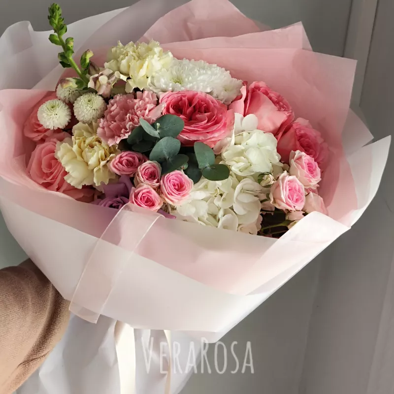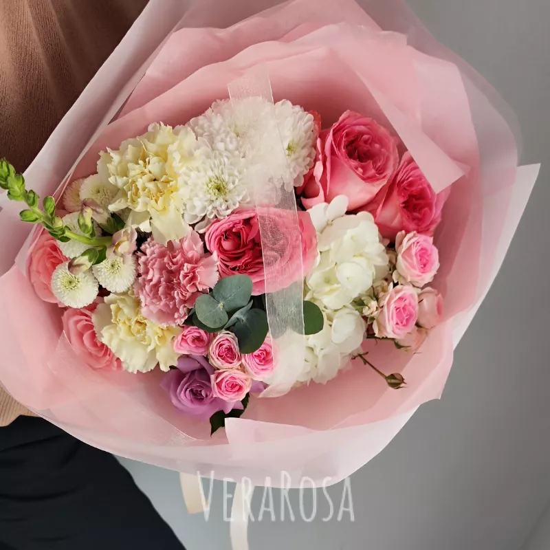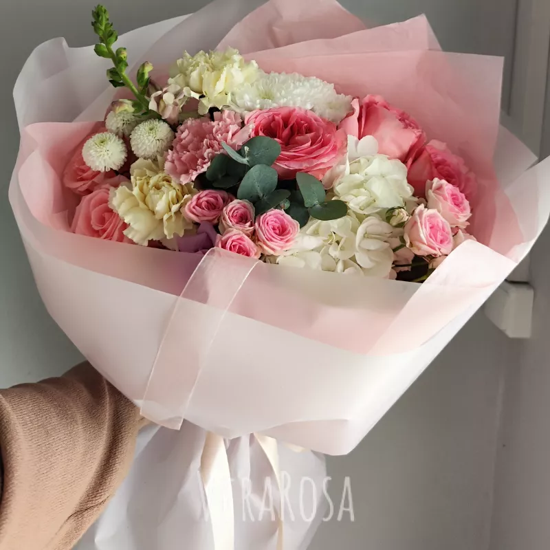 Захотел порадовать жену букетом без причины и повода. Спасибо флористам за то, что помогли выбрать цветы и определиться с дизайном. Курьер с поставленной задачей справился отлично, цветы доставили вовремя, а я смог произвести эффект неожиданности.
