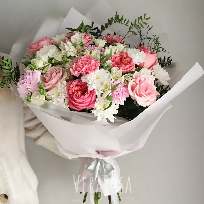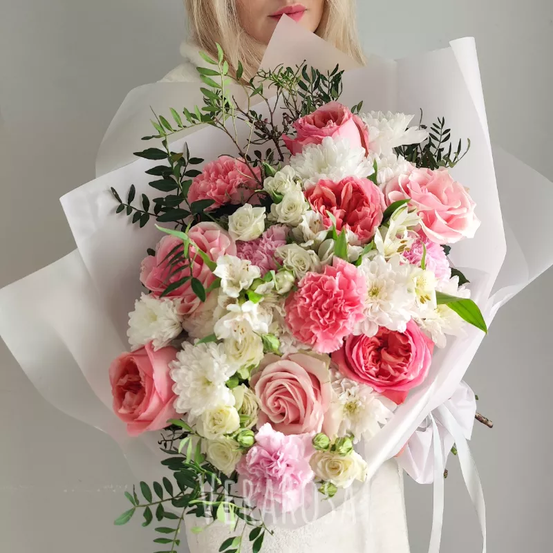 Захотел порадовать жену букетом без причины и повода. Спасибо флористам за то, что помогли выбрать цветы и определиться с дизайном. Курьер с поставленной задачей справился отлично, цветы доставили вовремя, а я смог произвести эффект неожиданности.