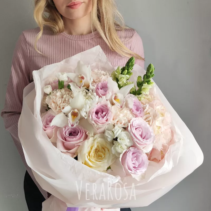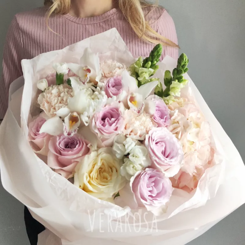 Захотел порадовать жену букетом без причины и повода. Спасибо флористам за то, что помогли выбрать цветы и определиться с дизайном. Курьер с поставленной задачей справился отлично, цветы доставили вовремя, а я смог произвести эффект неожиданности.