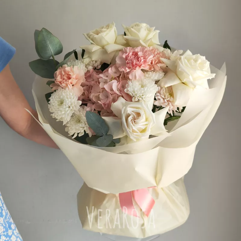 Захотел порадовать жену букетом без причины и повода. Спасибо флористам за то, что помогли выбрать цветы и определиться с дизайном. Курьер с поставленной задачей справился отлично, цветы доставили вовремя, а я смог произвести эффект неожиданности.