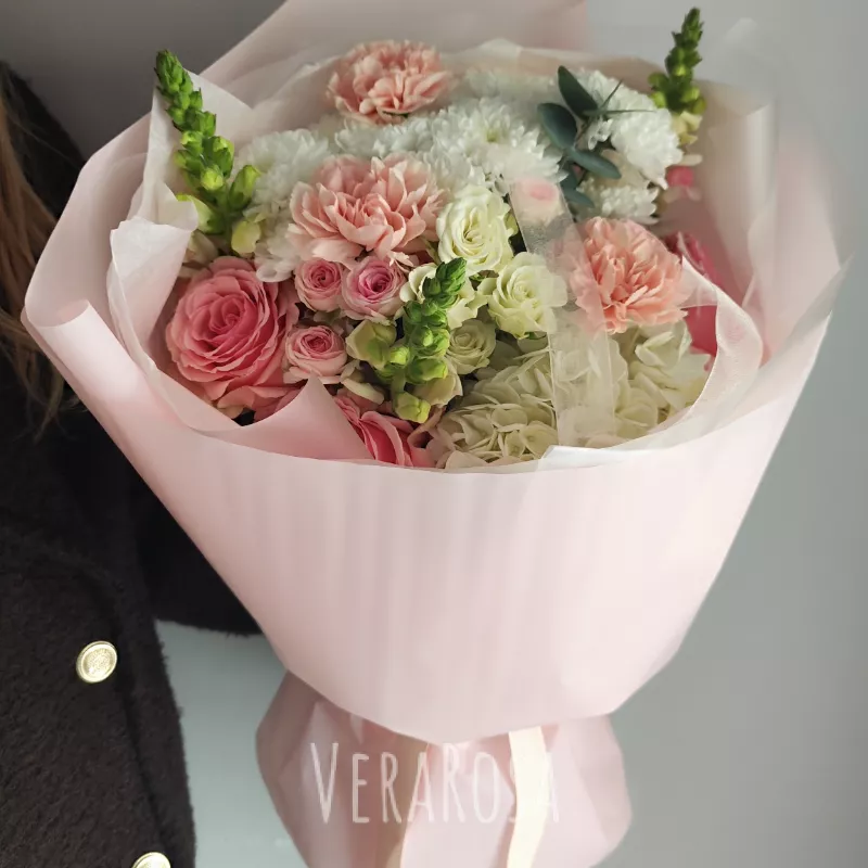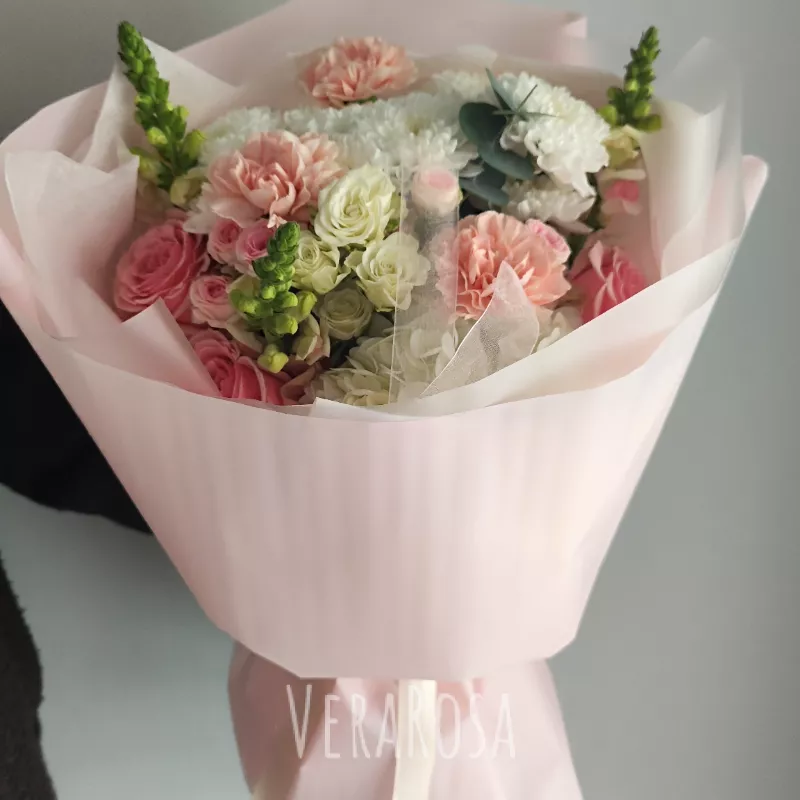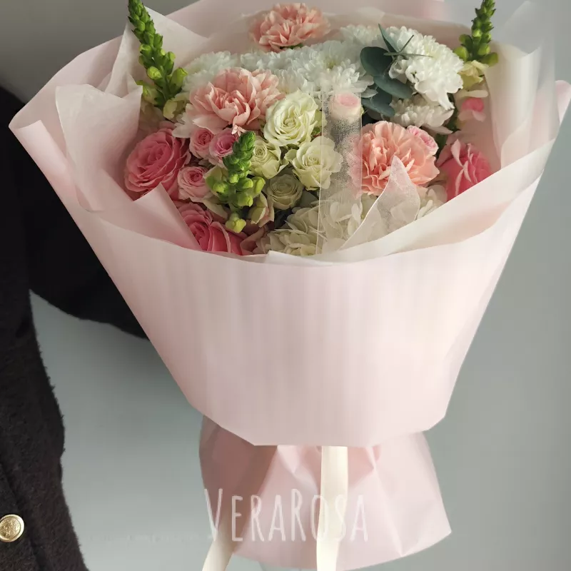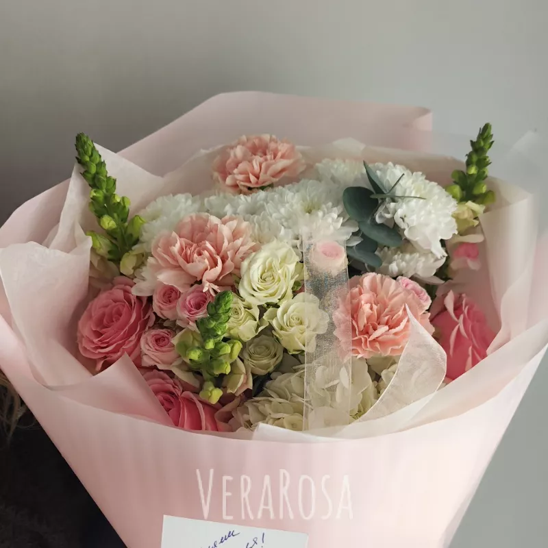 Захотел порадовать жену букетом без причины и повода. Спасибо флористам за то, что помогли выбрать цветы и определиться с дизайном. Курьер с поставленной задачей справился отлично, цветы доставили вовремя, а я смог произвести эффект неожиданности.