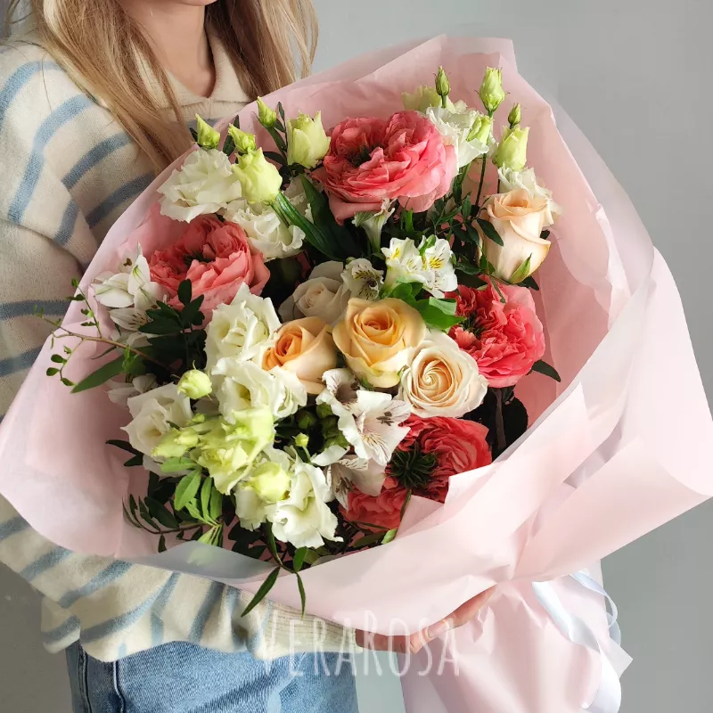 Захотел порадовать жену букетом без причины и повода. Спасибо флористам за то, что помогли выбрать цветы и определиться с дизайном. Курьер с поставленной задачей справился отлично, цветы доставили вовремя, а я смог произвести эффект неожиданности.