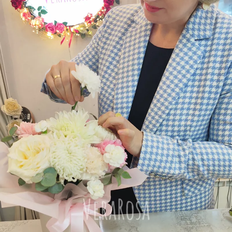 Превосходный цветочный салон. Хочется отметить вежливость консультантов, их терпеливость. Заказывала букет на юбилей мамы. Мне было важно, чтобы собрали уникальную композицию. отражающую ее дух.