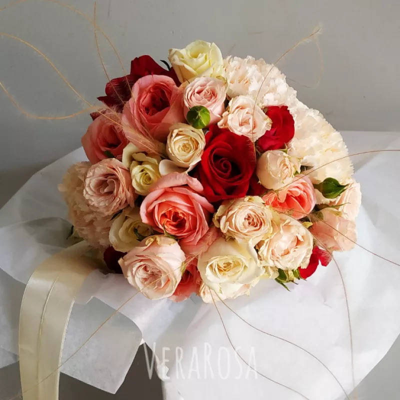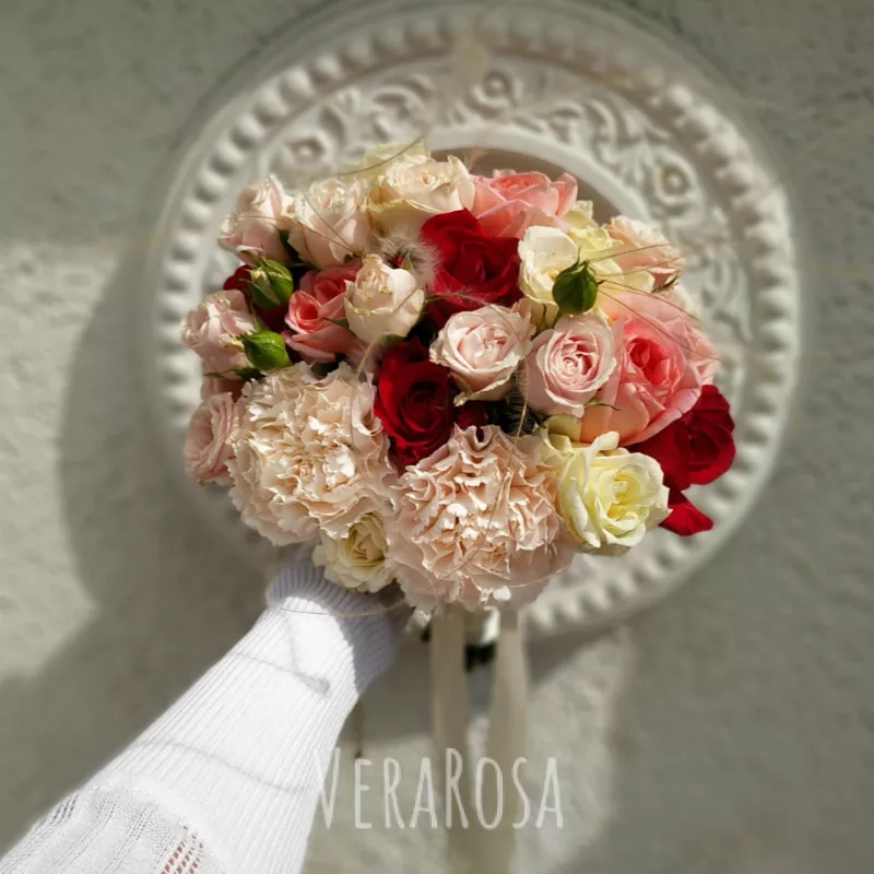 Ваш свадебный букет заставил моих подружек драться и плакать на свадьбе. Цветы достойно выдержали видеосъемку утра невесты, фотосессию, регистрацию и праздник в ресторане. Мне было не стыдно бросить его в толпу, потому что я знала, что он простоит еще минимум 3 дня.