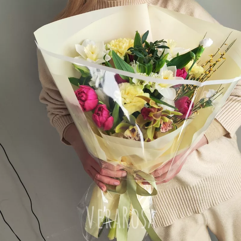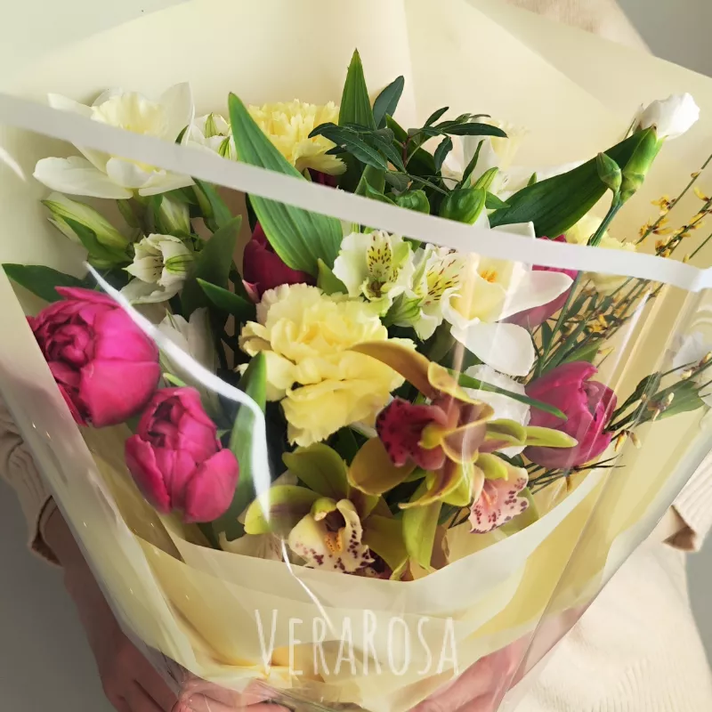 Захотел порадовать жену букетом без причины и повода. Спасибо флористам за то, что помогли выбрать цветы и определиться с дизайном. Курьер с поставленной задачей справился отлично, цветы доставили вовремя, а я смог произвести эффект неожиданности.