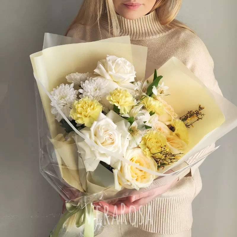 Захотел порадовать жену букетом без причины и повода. Спасибо флористам за то, что помогли выбрать цветы и определиться с дизайном. Курьер с поставленной задачей справился отлично, цветы доставили вовремя, а я смог произвести эффект неожиданности.